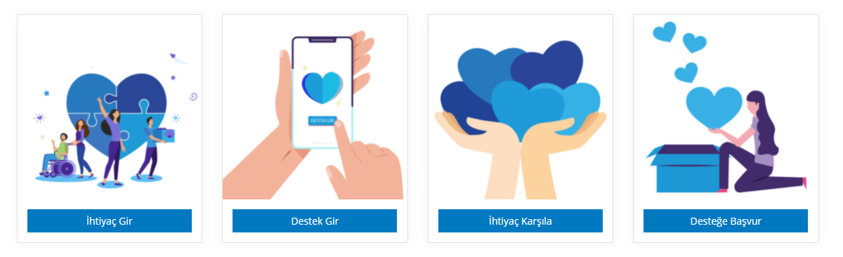 Farklı konulardaki desteklerin girilebildiği bu bölümde, kişilerin ve kurumların destek konusunu, tanımını ve iletişim bilgilerini yine adres temelli olarak girmesi gerekiyor. Desteğe ihtiyacı olan kişi ve/ya kurumlar buradan başvuru yapabiliyor. Destek girmek istiyorsanız ihtiyacharitasi.org’a mutlaka üye olmanız gerekiyor. Daha sonra kendi profiliniz ile desteğinizi ayrıntılı bir şekilde yazabiliyorsunuz. Son olarak da ana sayfadaki haritada desteğinizi bilgi olarak görebiliyorsunuz. Herkese açık olarak yer alan bu bilgi ile desteğe ihtiyacı olan kişiler veya kurumlar “Başvur” butonuna basarak desteğinize olan talebi bize iletiyor. Bu süreçte ihtiyacharitasi.org sizin bilgilerinizi istemediğiniz sürece 3. kişi veya taraflar ile paylaşmıyor. Bu yüzden güvenli ve etkin bir filtreleme süreci oluyor.