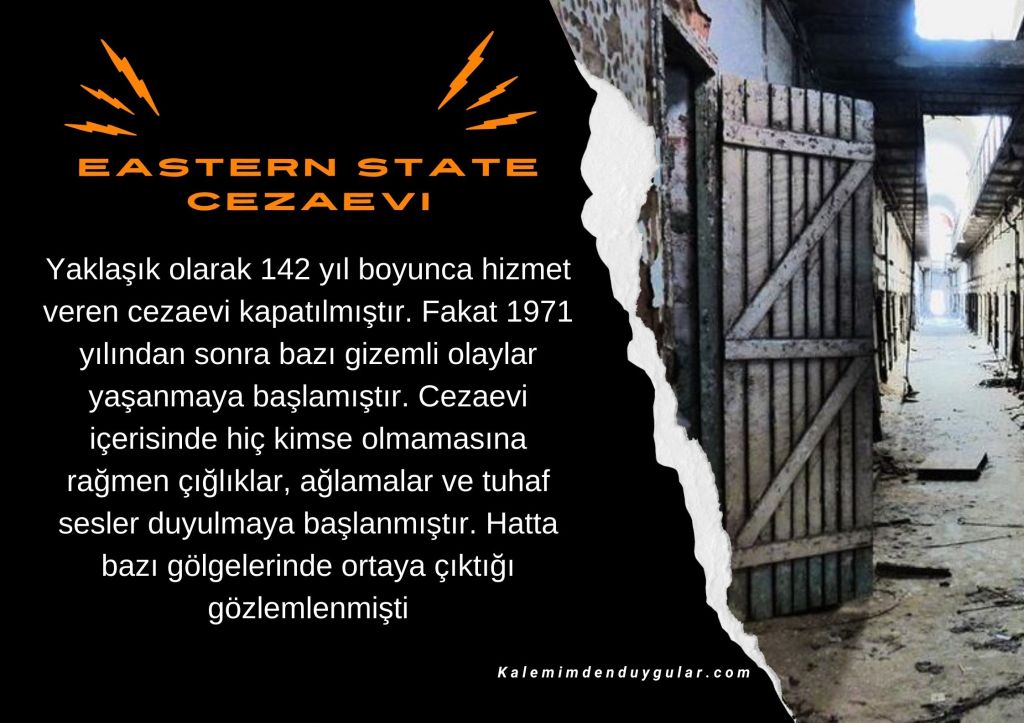 188 yıldır ayakta duran ABD’nin Pensilvanya eyaletinde bulunan Eastern State Cezaevi, oldukça tüyler ürpertici bir hikâyeye sahiptir. 1829 yılında büyük bir alana inşa edilen cezaevi Amerika Birleşik Devleti’nin en azılı suçlularının ceza alması için hazırlanmıştır. Suçluların cezalarını çekmesi ve günahlarından arınması için karanlık bir hücreye kapatılmaktadır. Bu hücrede hiçbir iletişim imkânı bulamayan çoğu suçlu aklını yitirmektedir.