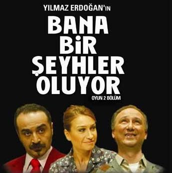 Yılmaz Erdoğan’ın yazmış olduğu Bana Bir Şeyhler Oluyor tiyatro oyununda Demet Akbağ, Altan Erkekli birçok ünlü isim yer almaktadır. Tiyatro oyununda 2001 yılındaki ekonomik krizde ayakta kalmaya çalışan ve bunun sonucunda iflas eden bir babanın psikolojik olarak bunalıma girmesini anlatmaktadır. Bu bunalım ile ruh ve sinir hastalıklarında elektro şok ile kendine getirilen karakter çok farklı bir karakterle ortaya çıkmaktadır. İlk başta deli zannedilen bu karakter sonrasında hoca olarak ilan edilmesi ile birçok trajikomik olaylar yaşamaktadır. İnsanlığı ve hayatı çok iyi bir şekilde dile getiren bu oyun içerisinde Oysa Sevin Dedi Tanrı şiiri gibi birçok replik günümüzde hala dile getirilmektedir.