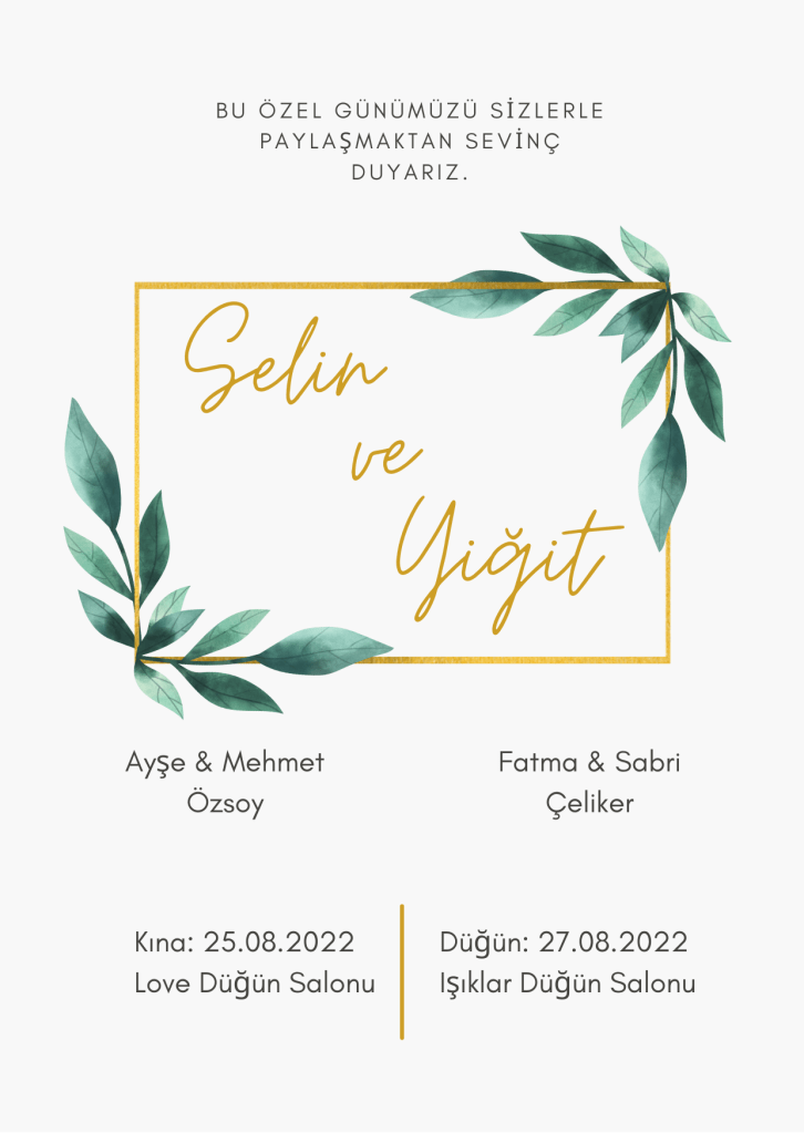 Yeşilin Zarifliği Temalı Düğün Davetiyesi