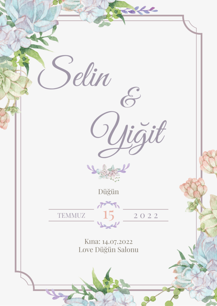 Pembe çiçek temalı düğün davetiyesi ile sade ve zarif bir davetiyeye sahip olabilirsiniz. Bu tasarımı aşağıdaki link yardımı ile indirebilirsiniz.