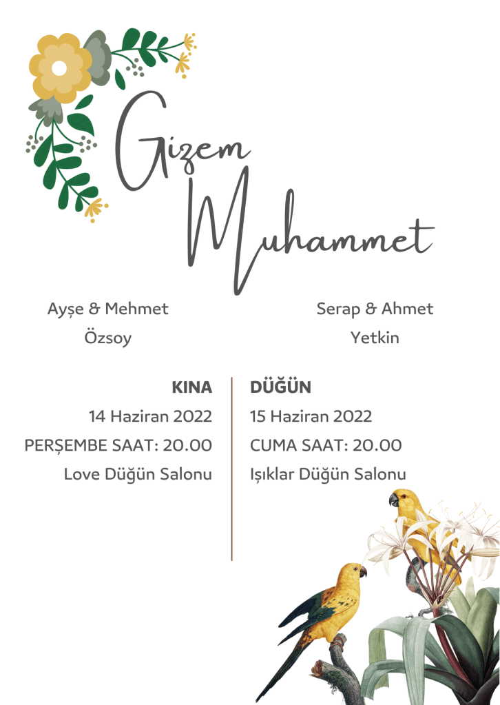 Tasarladığım özgür ruhlu kuş temalı düğün davetiyesi ile bağımsız karakterinizi simgeleyebilirken muhteşem görünüme sahip davetiyelere sahip olabilirsiniz. Bu tasarımı aşağıdaki link yardımı ile indirebilirsiniz.
